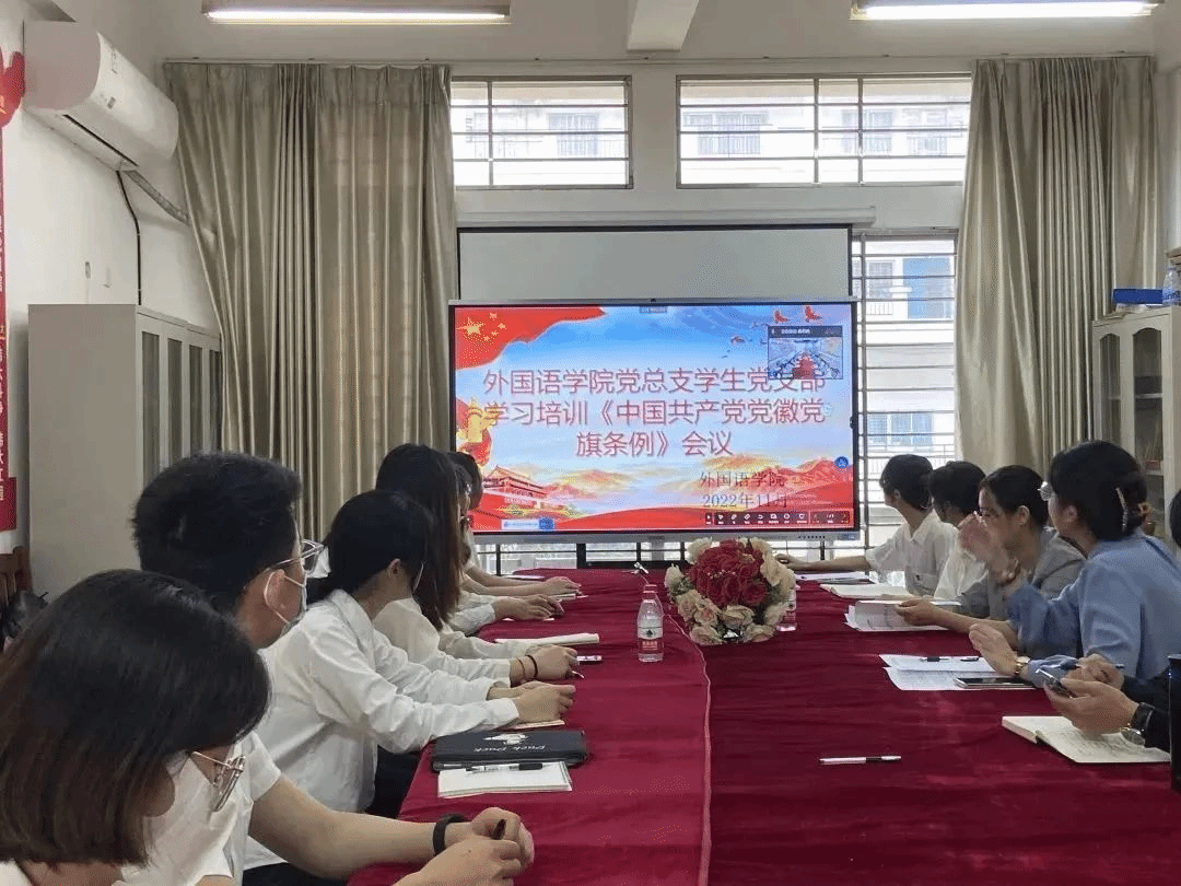 9428cn太阳集团古天乐党总支学生党支部召开《中国共产党党徽党旗条例》学习培训会议